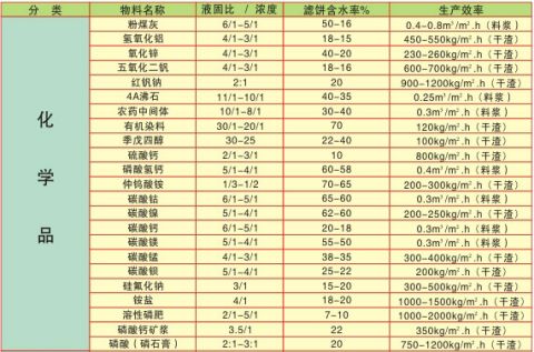 PBF型帶式真空過濾機典型應用實例表(biǎo):